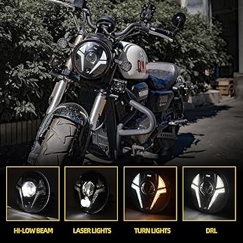 5.75 Inch LED Motorcycle Headlight with Housing &White DRL HiLo Headlight Fit 32-40mm Fork Tube For Motorcycle Compatible with Kawasaki Shadow for Suzuki Motorbikes Metric bikes Cruiser