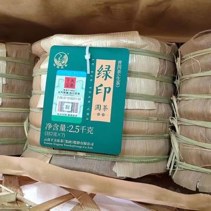 7 pieces, 2500 grams in total. 2023 Xiaguan Green Printing Round Tea, 357 grams of raw tea per cake Yunnan Raw Puer Tea Cake Chinese Pu Erh Black Tea Yunnan Pu er Raw Tea