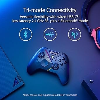 ASUS ROG Raikiri Pro OLED Display, tri-Mode connectivity, remappable Buttons&triggers, 4 Rear Buttons, Step&Linear triggers, Adjustable Joystick Sensitivity, 3.5mm Jack with ESS DAC, for PC and Xbox