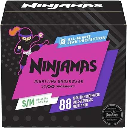Pampers Ninjamas Nighttime Bedwetting Underwear Girls - Size SM (38-70 lbs), 88 Count (Packaging May Vary)