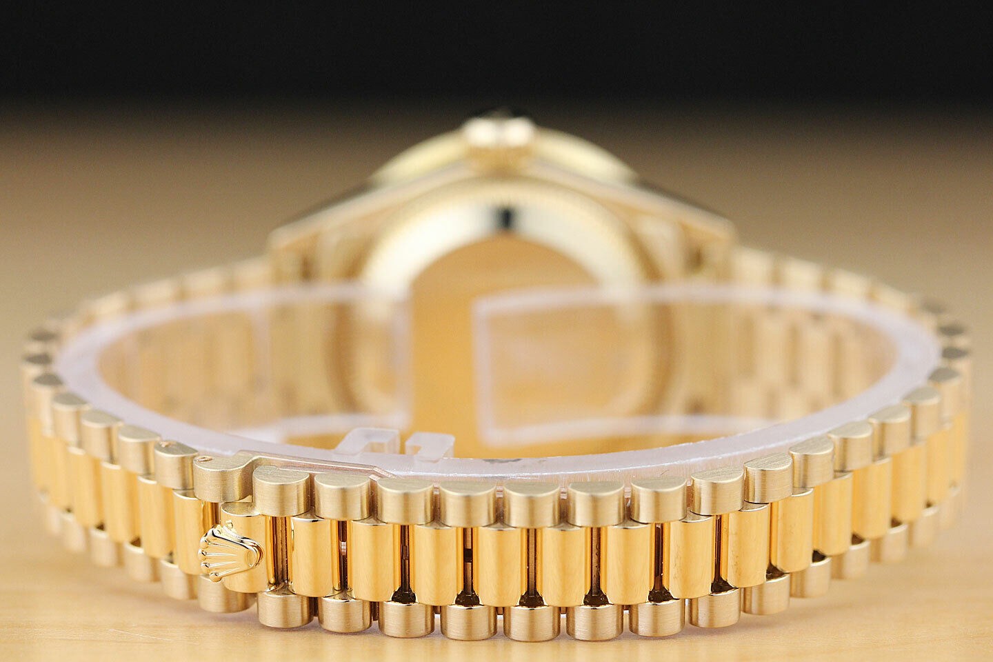 ROLEX LADIES PRESIDENT FACTORY DIAMOND DIAL 18K YELLOW GOLD QUICKSET WATCH